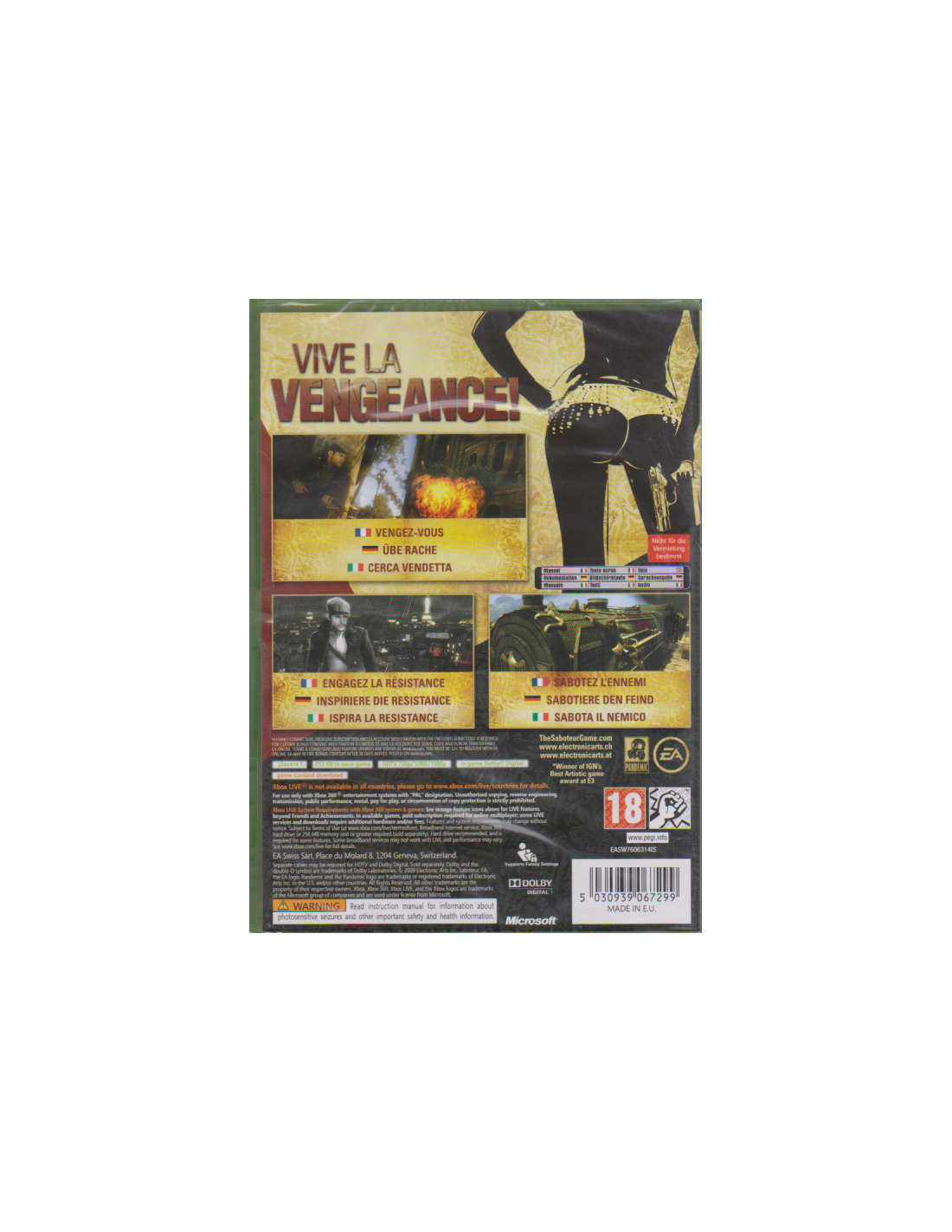 Saboteur erzählt die Geschichte von Sean Devlin, einem hartgesottenen, irischen Rennfahrer, der 1940 im besetzten Frankreich hinter die feindlichen Linien gerät. Aus persönlichen Rachemotiven kämpft sich Sean durch Paris und sabotiert verschiedene Operationen der deutschen Besatzer. Unterstützt von der französischen Résistance, dem britischen Geheimdienst, einem gewaltigen Waffenarsenal, einem guten Orientierungssinn und reiner Muskelkraft kann der Spieler Sean helfen, sich an seinen Feinden zu rächen. Sean verfügt über schnelle Autos und genug Waffen und Sprengstoff, um praktisch jeden Job erfolgreich abzuschließen. Dabei lässt er Züge entgleisen, holt Zeppeline vom Himmel oder erklimmt Pariser Sehenswürdigkeiten.