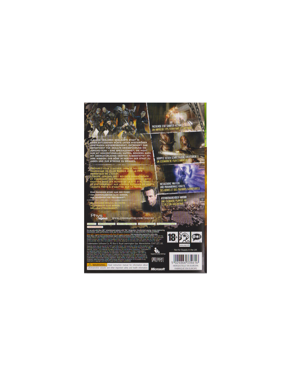 Clive Barker präsentiert in Zusammenarbeit mit Codemasters seine neuste Schreckensvision - „Jericho“: Bevor Gott Adam und Eva erschuf, misslang seine erste Schöpfung. Sein „Erstgeborener“ war abgrundtief böse, ohne Seele. Verbannt in alle Ewigkeit brennt der Erstgeborene auf Rache und bereitet das Ende der Menschheit vor. Schauplatz ist die vergessene Wüstenstadt Al-Khali, wo plötzlich übernatürliche Störungen auftreten. Archäologen, die dort an Ausgrabungen arbeiteten, sind verschwunden. Dorthin wird das Jericho-Team geschickt – eine Sondereinsatztruppe, geschult an modernen Waffen und in okkulten Techniken. Doch das, was Ihnen hier bevorsteht, geht weit über das Vorstellbare hinaus… „Clive Barker’s Jericho“ kombiniert eine faszinierende Hintergrundgeschichte, die Jahrhunderte überspannt, und interessante Charaktere mit einem furiosen Ego-Shooter-Ereignis, das erwachsene Spieler mit viel Action, atemloser Atmosphäre und krassen Horror-Elementen in den Bann ziehen wird.